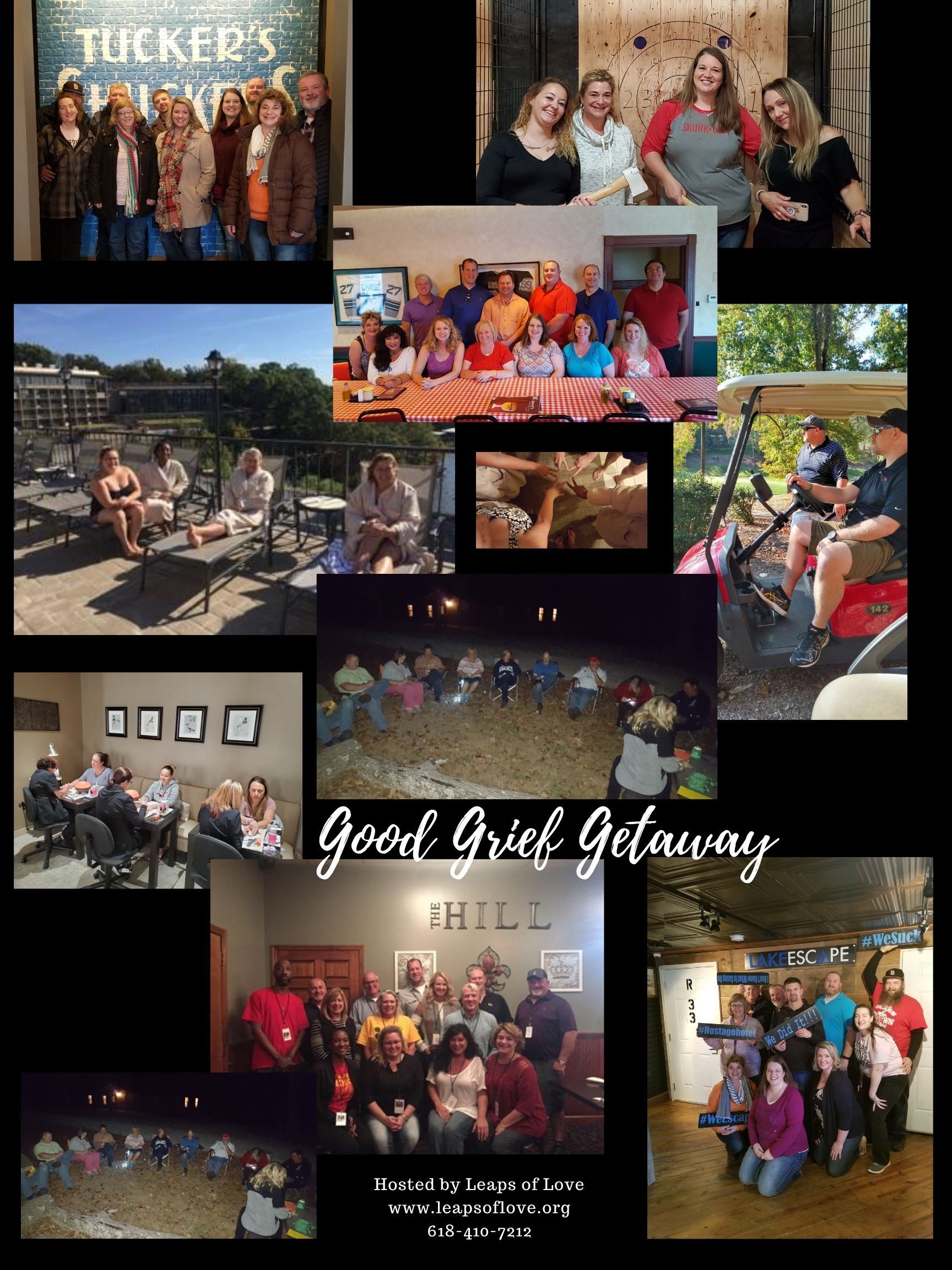 Grieving alongside others who truly understand can be incredibly beneficial in many ways. Leaps of Love hosts a Good Grief Getaway for parents who have lost a child to cancer, focusing specifically on childhood cancer to foster a sense of connection through shared experiences. What to Expect: This FREE getaway emphasizes the individual nature of grief and the distinct ways couples navigate their experiences. The relaxed weekend includes activities designed to promote sharing and healing within a supportive environment. Each couple will have their own bedroom and bathroom, with designated meeting areas throughout the home that allow for both privacy and interaction. The Good Grief Getaway is nondenominational. We expect all participants to engage respectfully, without discrimination based on race, age, nationality, gender, sexual orientation, or religious beliefs. This year's Good Grief Getaway is scheduled for October 24-26, 2025, at Lake Ozark, Missouri. Transportation will be provided, along with various entertainment.