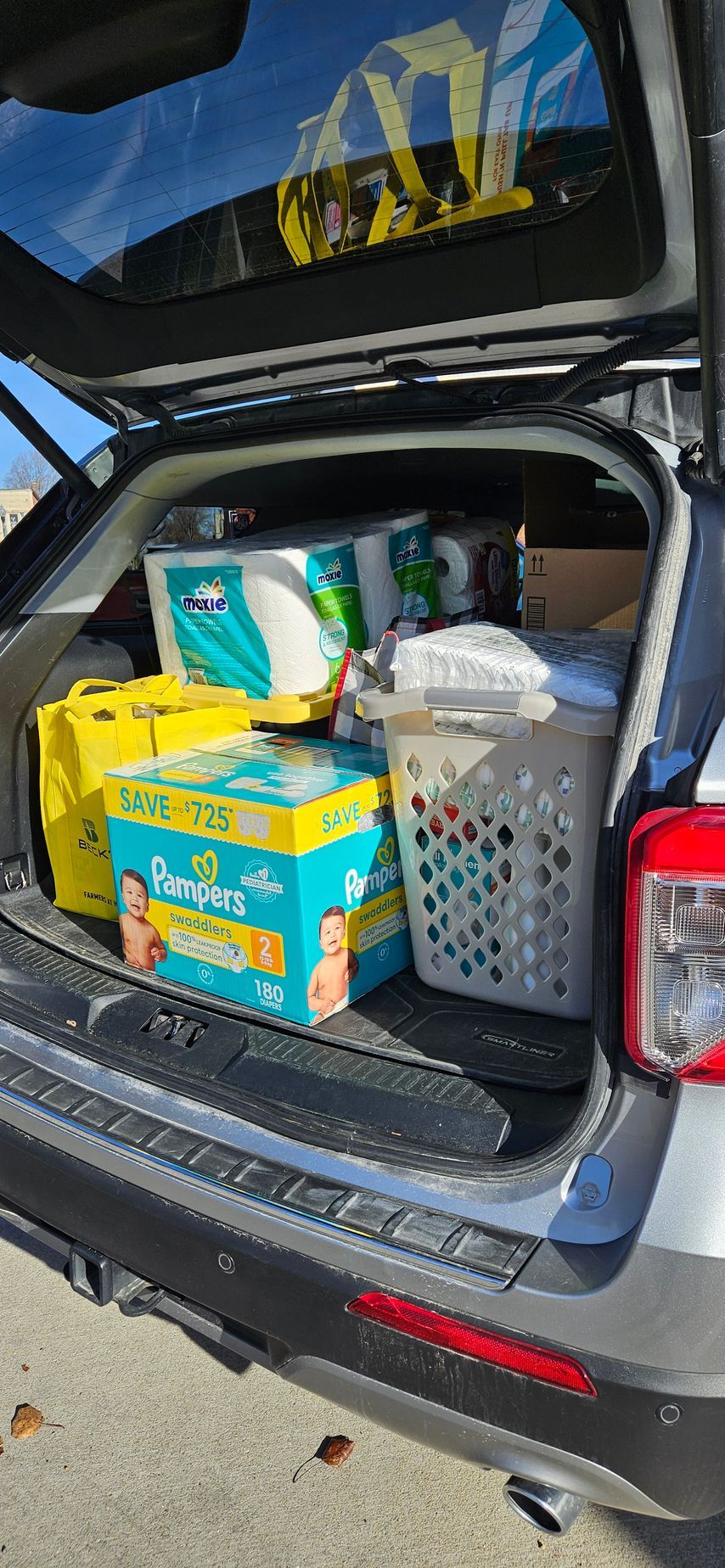 Cleaning supplies: Lysol, Clorox wipes, paper towels, dish soap, laundry detergent/softener/spot remover, bleach, etc.